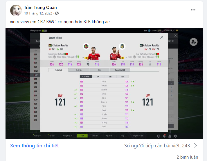 Đây là cách cực hữu dụng cách đây khoảng 6 năm thời FO3, tuy nhiên giờ đây các youtube cũng chẳng mặn mà với việc làm review nữa vì view ít mà số lượng cầu thủ giờ đây ra nhanh quá, chưa kịp làm review xong thì mùa mới của chính cầu thủ đó đã ra rồi. Bạn cứ nhìn thử số lượng Ronaldo, Perisic, Son Heung Min trong game mà xem. Mùa nào cũng na ná nhau, nếu mà review chắc chỉ cần copy page là xong.