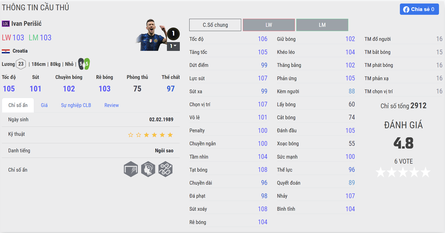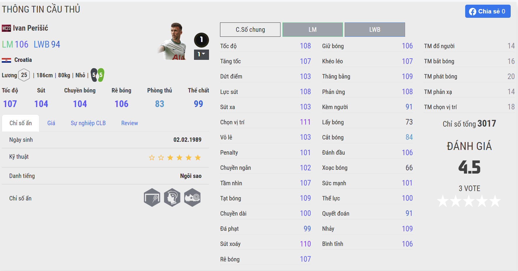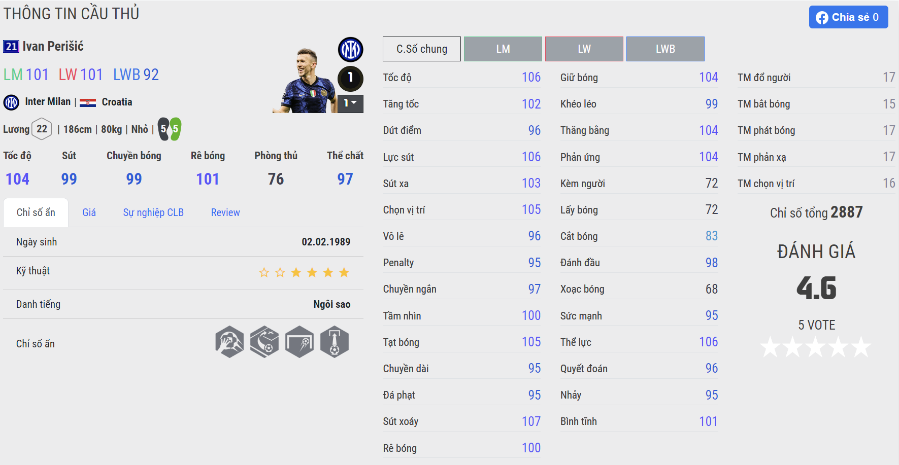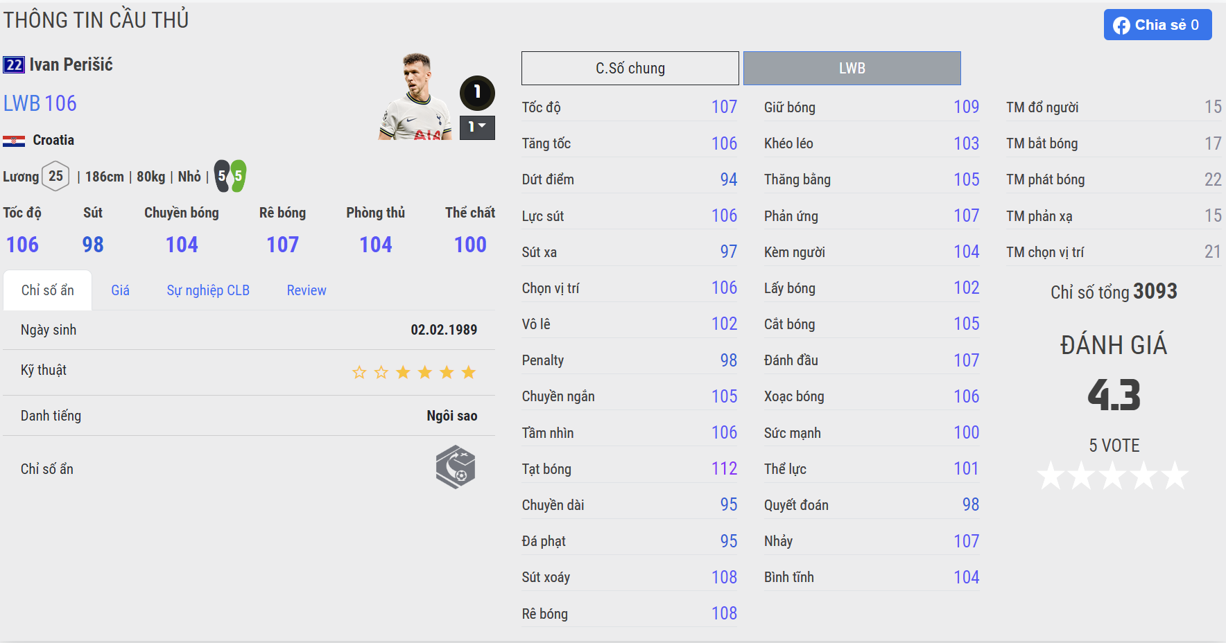 Nhược điểm : Không quá nổi bật về một khía cạnh cụ thể nào, giành cho những người chơi thích một cầu thủ bình bình