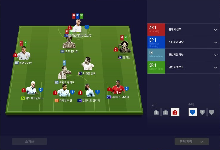 Bạn không cần lo lắng về việc dàn HLV của mình phải thay đổi, nó vấn rất tốt. Tuy nhiên ở hai vị trí hậu vệ cánh cần kỹ năng tăng cường phòng thủ, nó sẽ giúp bạn chống tạt bóng tốt hơn đấy.