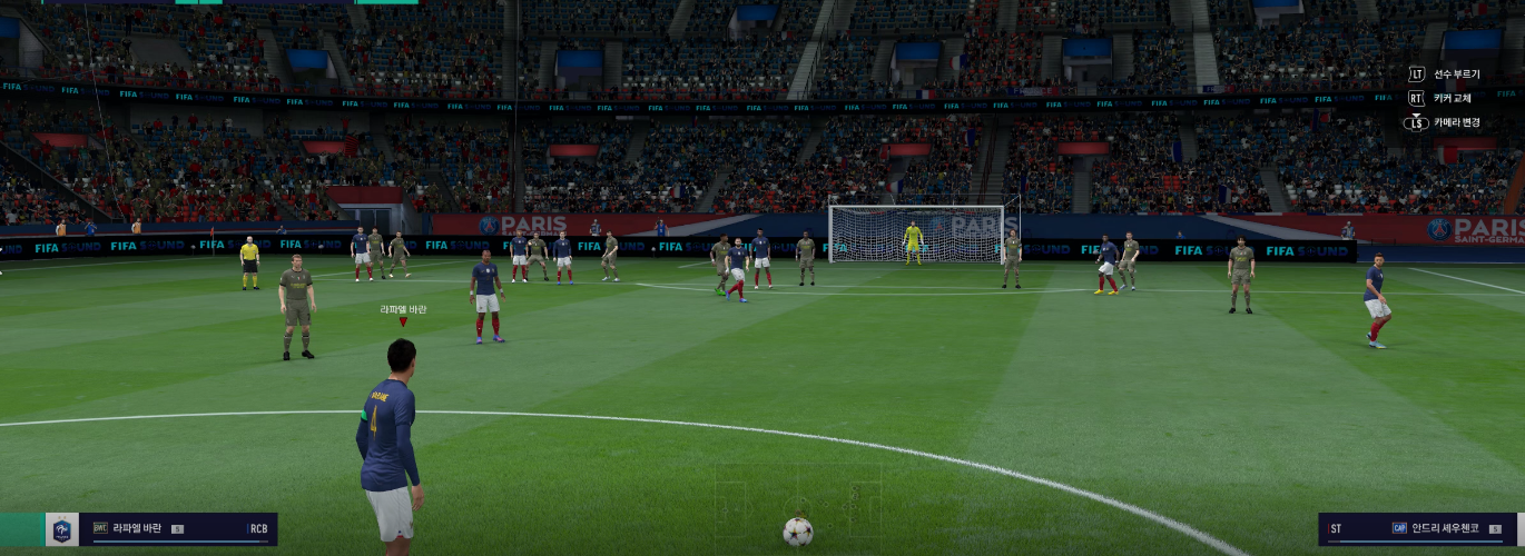 đầu tiên ấn R để thay góc nhìn của cú đá phạt, sau đó hướng góc nhìn về phía cầu thủ nhận bóng