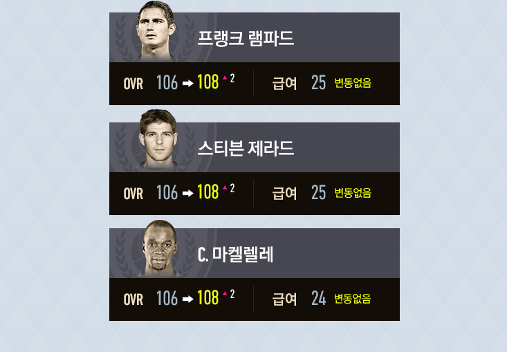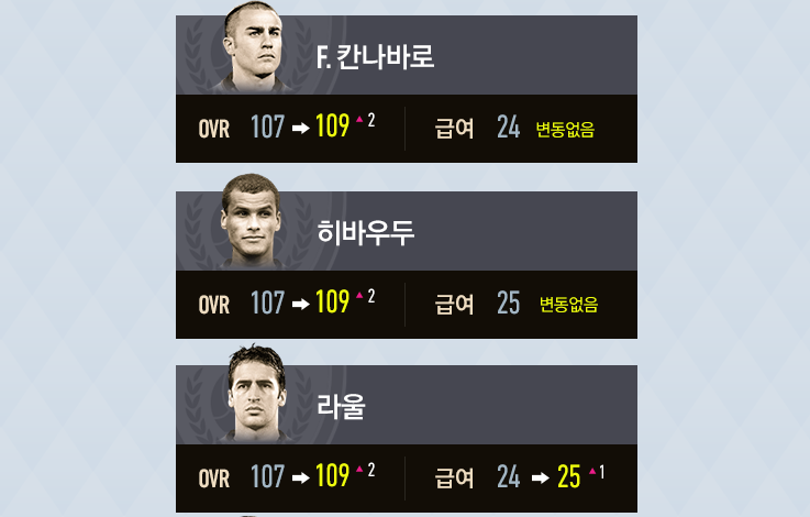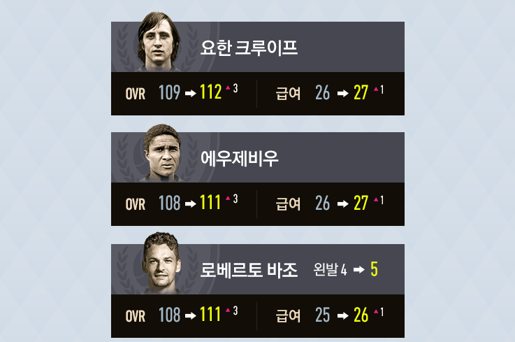 Chỉ số tổng quát được tăng từ 2-3 điểm cùng với đó là chỉ số lương cũng được tăng thêm 1 tùy thuộc từng cầu thủ.