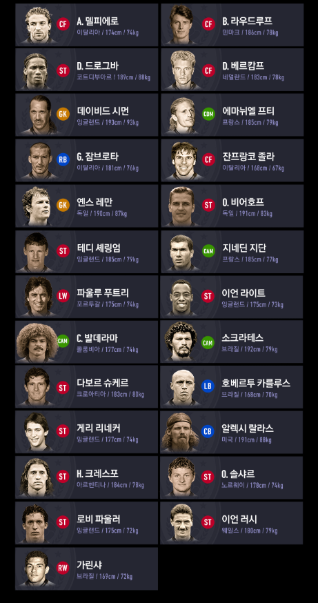 Ngoài những ICON đã quá quen mặt thì có thêm 5 cầu thủ mới là Drogba, Zidane, Socrates, Garrincha và Rush . Tổng cộng có 23 ICON mới sẽ được thêm vào trong FIFA Online 4.