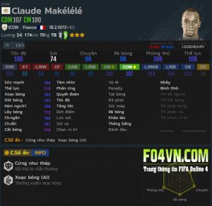 - Cắt bóng : Makelele cắt bóng khá ổn, tuy nhiên với chỉ số 110 thì nó không đúng cho lắm. Cảm giác nó như Vieira thôi.