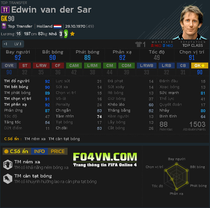 Van der Sar TT là thủ môn rất đáng đồng tiền bát gạo mà bạn bỏ ra.Nếu như bạn đang bực bội vì thủ môn trong đội hình bạn luôn xảy ra tình trạng ngáo ngơ và tìm cho mình một thủ môn xuất sắc và ổn định trong những pha bắt bóng thì còn chần chừ gì nữa mà không rước Van der Sar TT về đội.Tôi có thể khẳng định với các bạn Van der Sar TT sẽ không làm bạn phải thất vọng đâu.