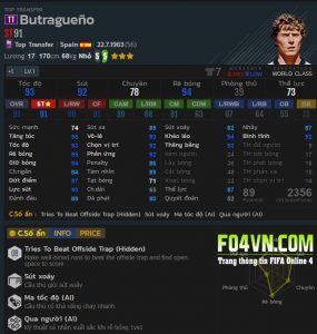 - Phối hợp : Butragueno dường như sinh ra để đá cặp trong các sơ đồ 2 tiền đạo, bạn cần 1 CF để phối hợp, hay mang ông ấy về. Với kỹ năng chuyền bóng bật nhả tốc độ cao, một hộ công tuyệt vời.