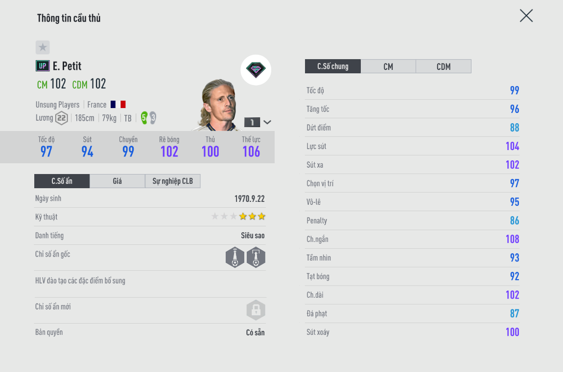 Là một cái tên đáng chú ý ở mùa giải UNSUNG khi mà Petit có bộ chỉ số cực cao lên đến 102. Liệu tiền vệ người Pháp có màn thể hiện như thế nào. Chúng ta sẽ cùng đến với những review của kênh KAD Channel.