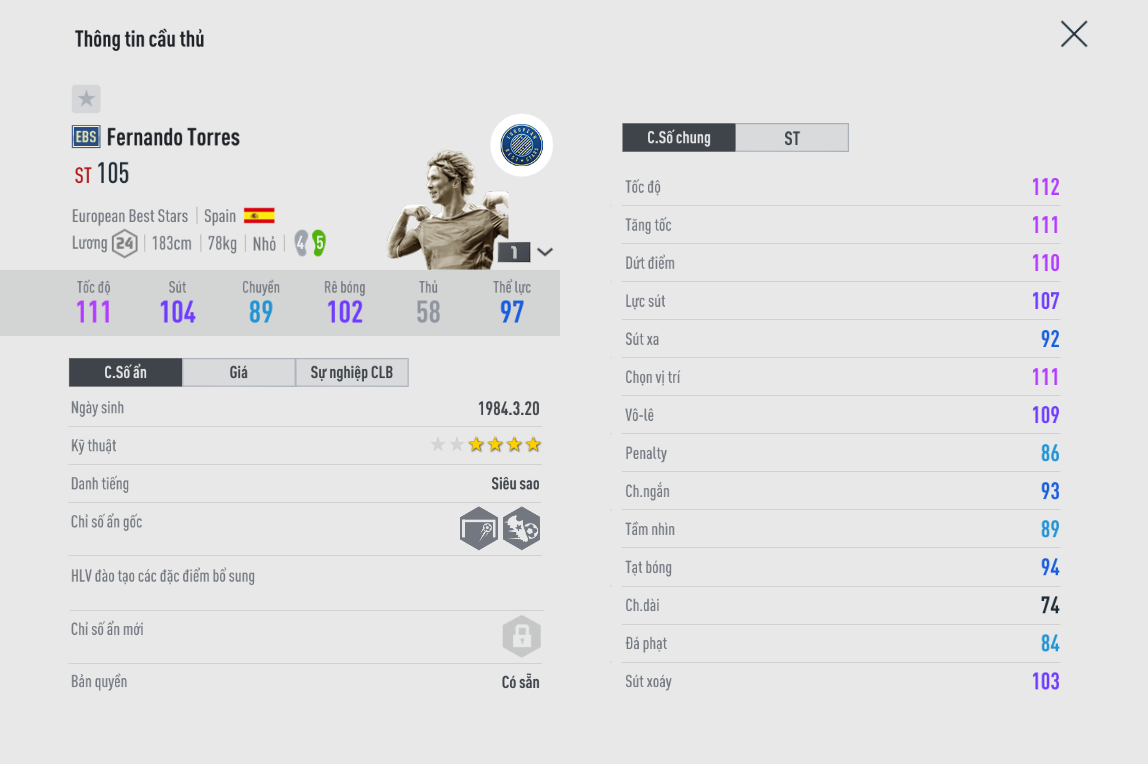 điểm mạnh của Torres chắc chắn là tốc độ khiến mọi hậu vệ đều kinh sợ. Và mùa EBS này chính là để tái hiện một T9 ss09 các bạn từng thấy ở Fo3. Với khả năng bứt tốc tuyệt vời, sẵn sàng cho mọi hậu vệ ngửi khói kể cả là khi T9 dẫn bóng