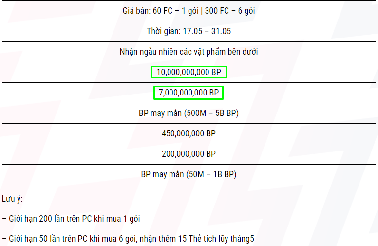 Với những vật phẩm mồi cực hấp dẫn như gói 10 tỷ BP, 7 tỷ BP. Liệu sự thực có được như quảng cáo hay không. Chúng ta sẽ đến với phần review của youtuber Trần Hoàng Việt