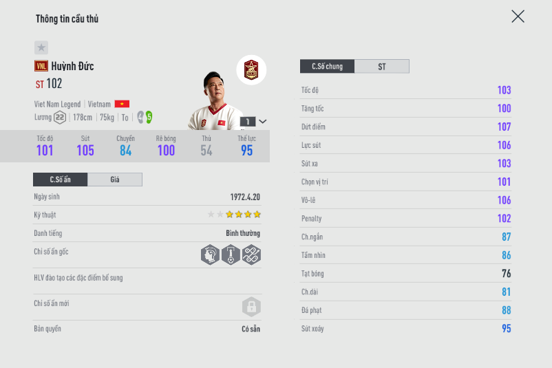 đây là điểm mạnh của huyền thoại này, đặc biệt là có độ ảo nhất định với mác " hàng Vn chất lượng cao". Bạn chỉ cần có khoảng trống là hoàn toàn có thể làm nên chuyện. Tuy nhiên cần chú ý đến chân trái của LHĐ khi mà anh thiếu đi sự ổn định. Đặc biệt là sút xa thì chân trái khá thọt. ZD cũng không phải là thế mạnh.