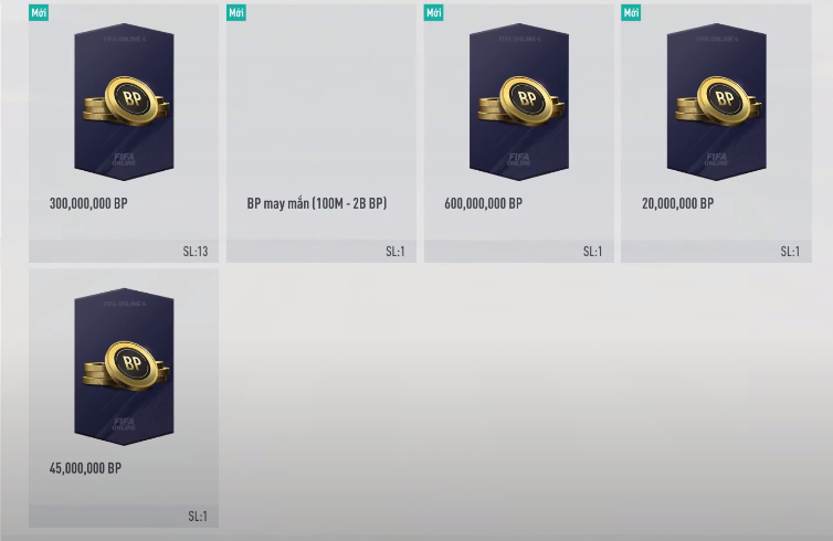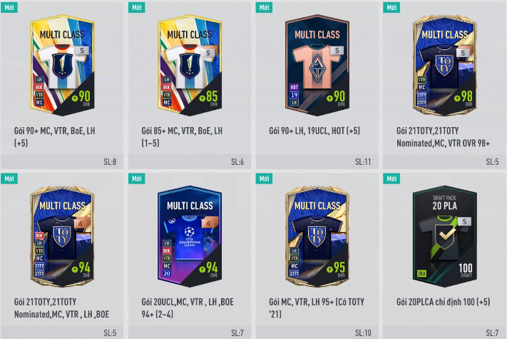 Các thẻ cầu thủ sau khi mở ra