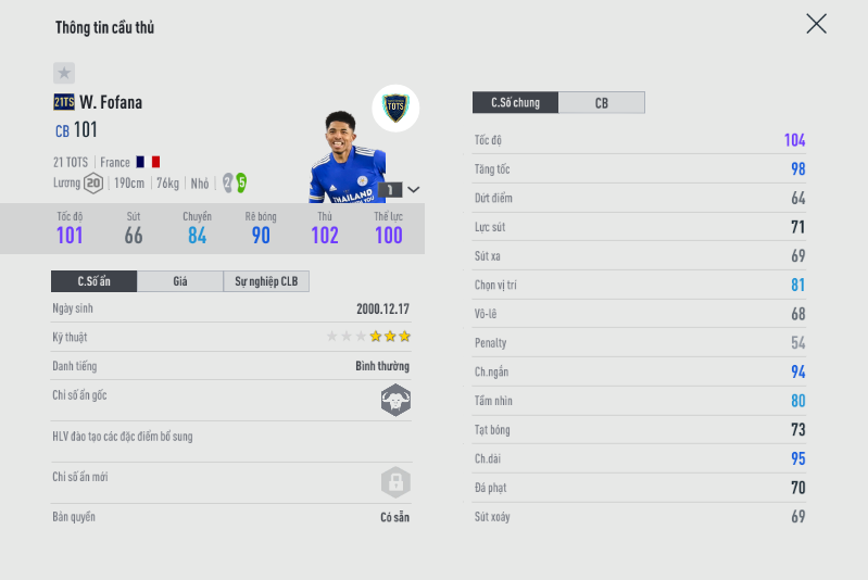 Cao to nhưng thể hình gầy, Fofana không hề bị rơi vào thế bị động trong các trường hợp bị vặn sườn hay vào bóng hụt, thậm chí anh chàng này còn ngay lập tức quay lại để tranh cướp bóng, đây là một điểm sáng dành cho cầu thủ của Leicester City