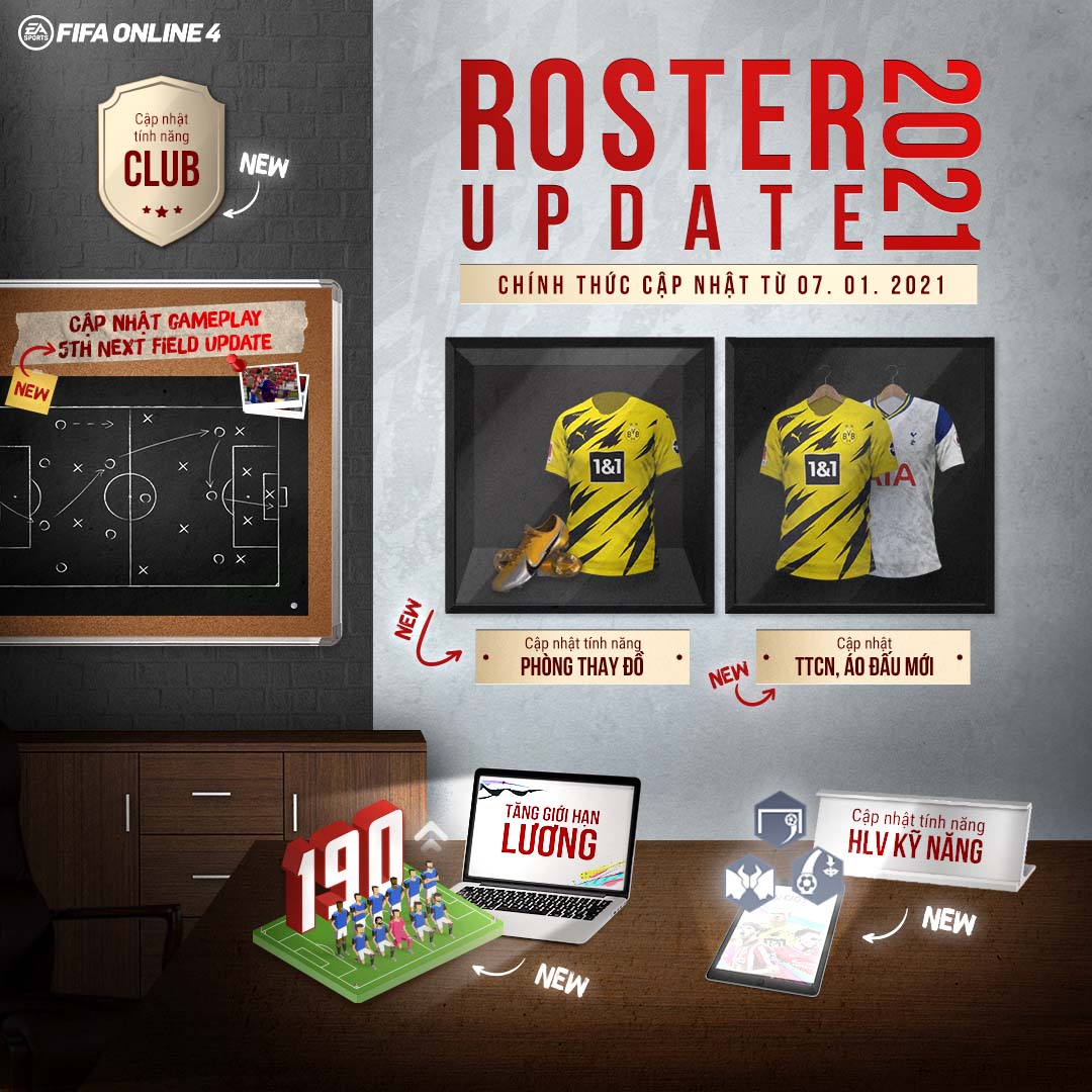 Vừa qua trên trang chủ của FIFA Online 4 Việt Nam đã thông báo chính thức về ngày thực hiện Roster Update là ngày 7.1.2021