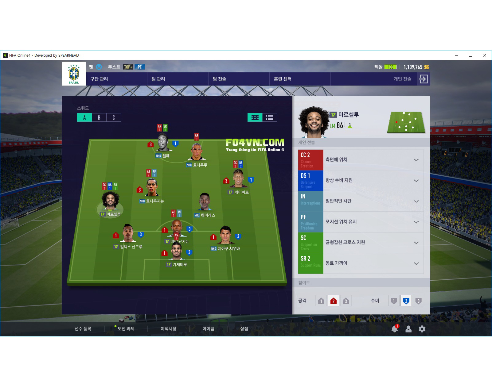 LM-Marcelo: Marcelo là một cầu thủ có lối chơi cực kì tích cực,không chỉ mạnh mẽ trong tranh chấp còn giữ vị trí cực tốt trong phòng thủ.Hãy để DP1 để Marcelo luôn sẵn sàng hỗ trợ phòng ngự khi cần thiết. Mặc dù là cầu thủ phòng ngự nhưng khả năng tấn công của Marcelo cũng không hề yếu kém.Hãy để CC2 để Marcelo liên tục bám biên tấn công biên hiêu quả cùng với SR2 sẽ khiến Marcelo bao quát hành lang trái cực kì tốt