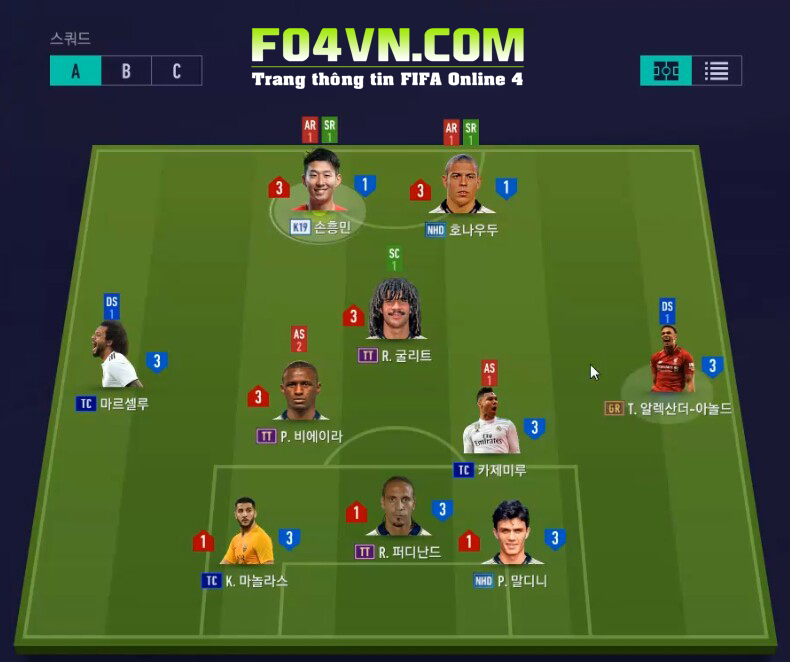 - RS,LS : AR1 xẻ nách và SR1 chạy chỗ hỗ trợ đồng đội. Xu hướng chơi 3-1