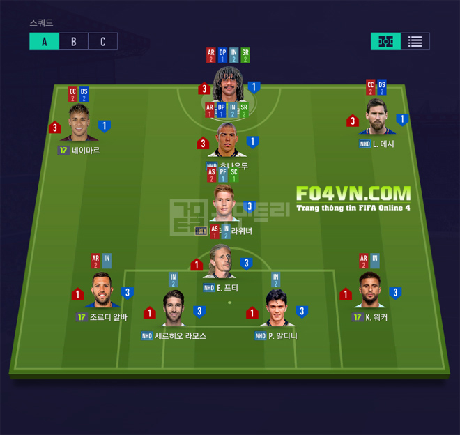 CF: AR1 và SR2 sẽ giúp chạy chỗ xẻ nách cũng như xuyên phá tốt hàng phòng ngự, hút người và sẵn sàng ập vào trừng phạt đối phương khi cần, cùng với DP1 và IN2 để tạo thêm sức ép lên đối thủ.