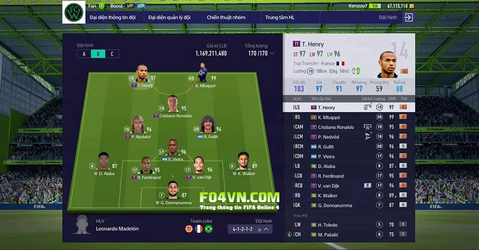 Sơ đồ chiến thuật dạng 4-1-2-1-2 được thiết lập dựa theo sơ đồ chiến thuật mặc định và không có bất kì thay đổi nào trong cách sắp xếp đội hình.