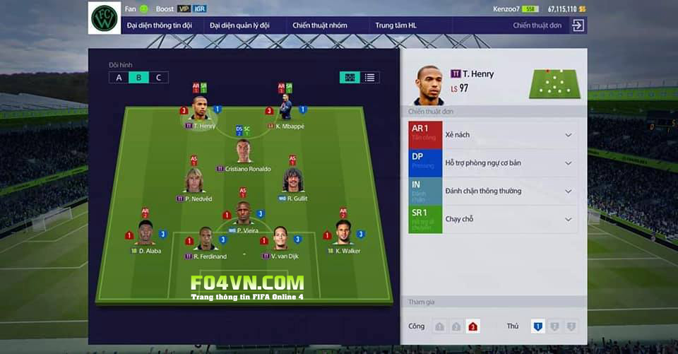 - RS,LS: AR1 và SR1 để các cầu thủ có khả năng chạy chỗ xẻ nách di chuyển thông minh để khuấy đảo hàng phòng ngự.
