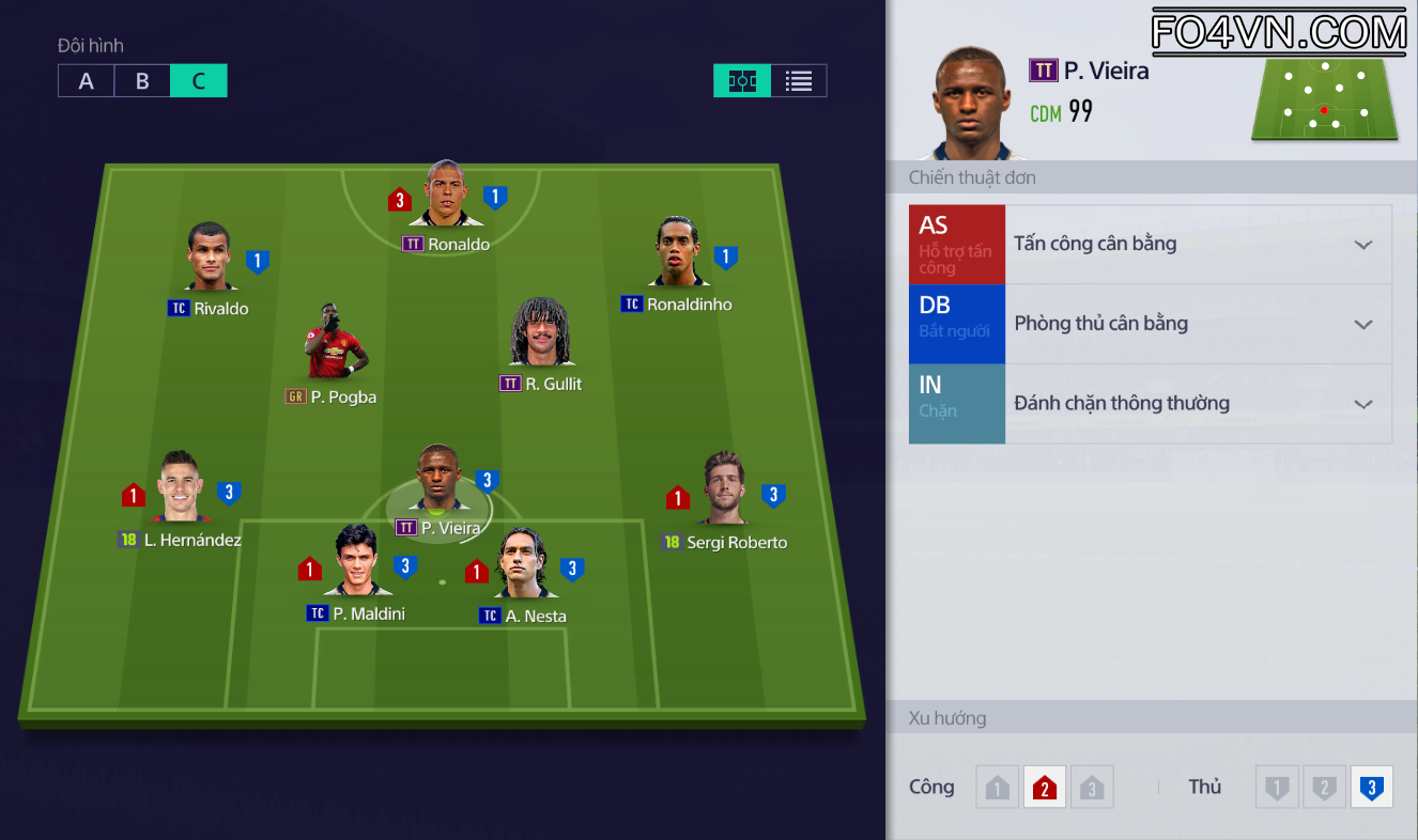 Hỗ trợ ngay phía dưới là bộ đôi tiền vệ công RAM, LAM. 2 vị trí này nên lựa chọn những cầu thủ toàn diện bởi lẽ ngoài việc triển khai lối chơi tấn công còn luôn sẵn sàng lui về phòng ngự khi cần thiết.