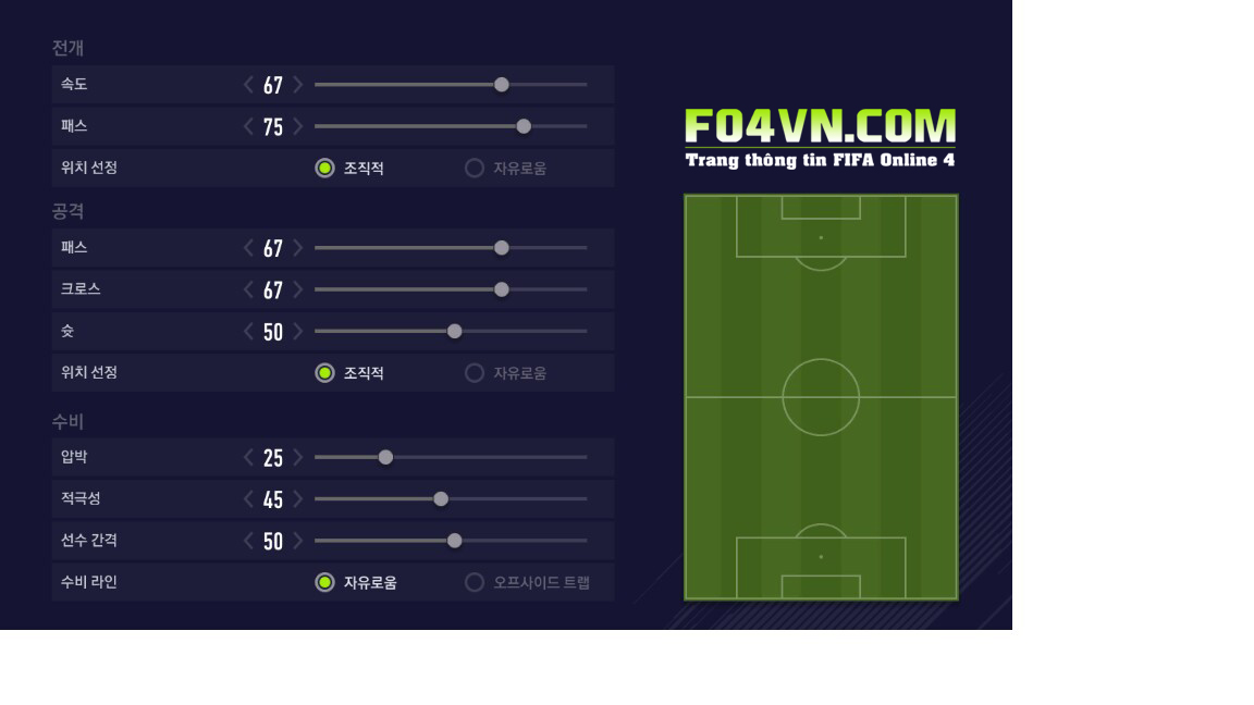 LCM,RCM : AS2 luôn tham gia tấn công, IN1 đánh chặn chủ động, PF1 di chuyển tự do. Xu hướng chơi 3-2.