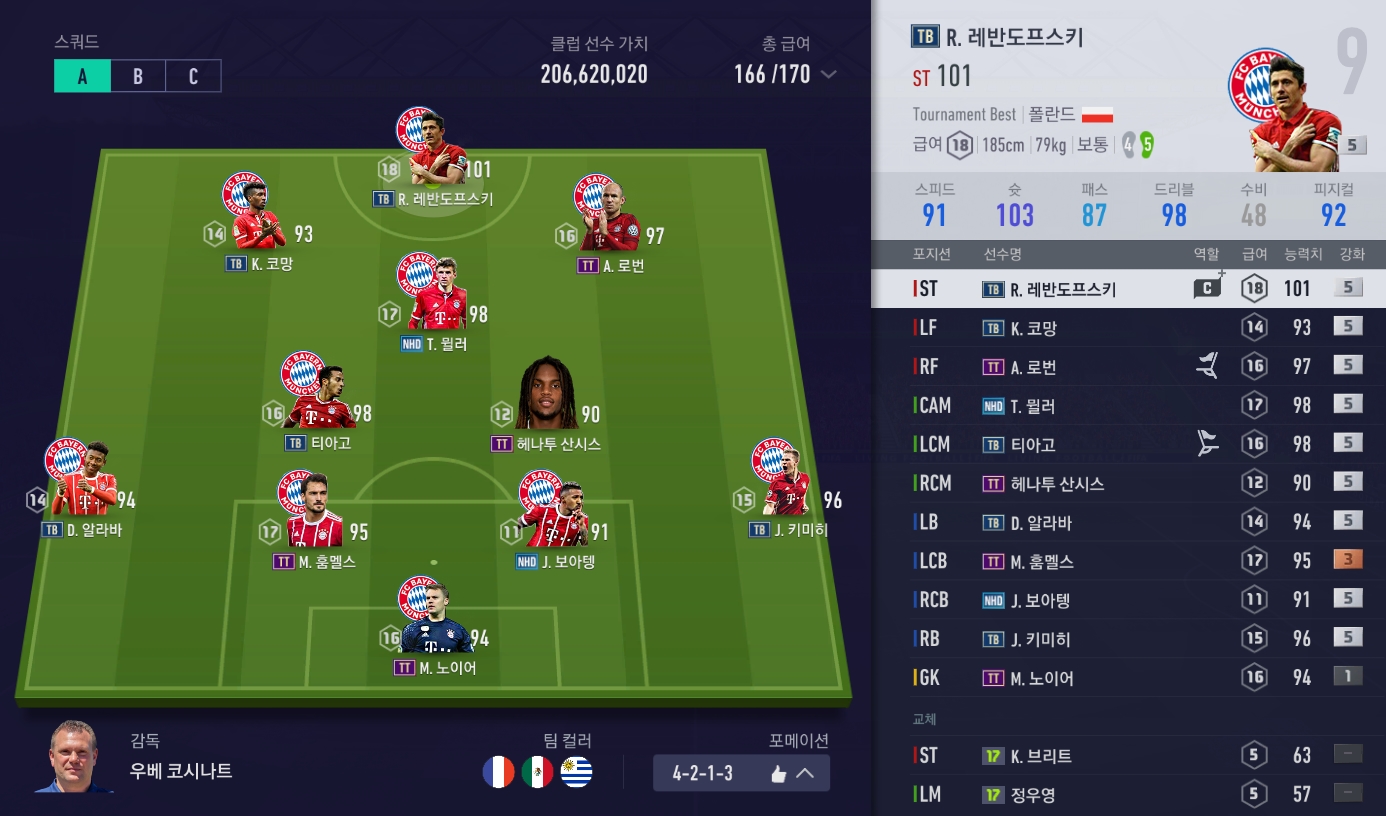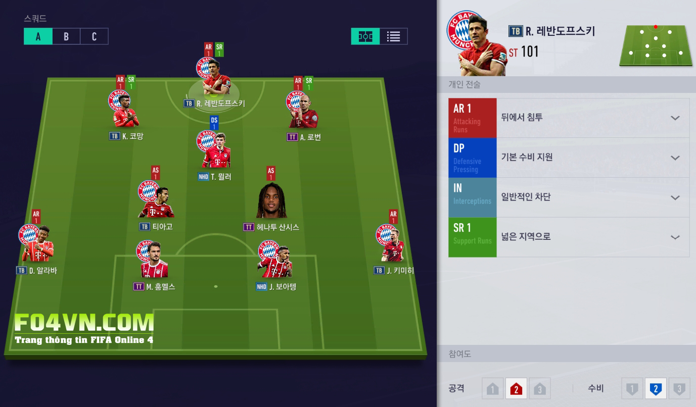 2 vị trí LF,RF chúng ta sẽ sử dụng Coman và Robben, những cầu thủ có tốc độ cực kì cao.
