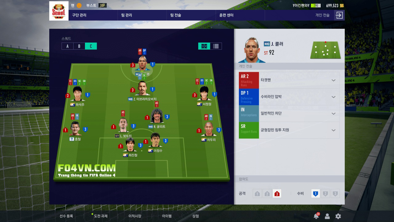 CAM : PF1 giúp di chuyển tự do và SC1 để luôn tham gia các tình huống tạt bóng từ biên. Xu hướng 3-1 thường xuyên tham gia tấn công