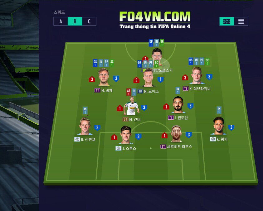 CAM : DS2 chỉ ở phía trên, IN1 đánh chặn chủ động, PF1 di chuyển tự do, SC1 tham gia vào các tình huống tạt bóng. Xu hướng chơi 3-1.