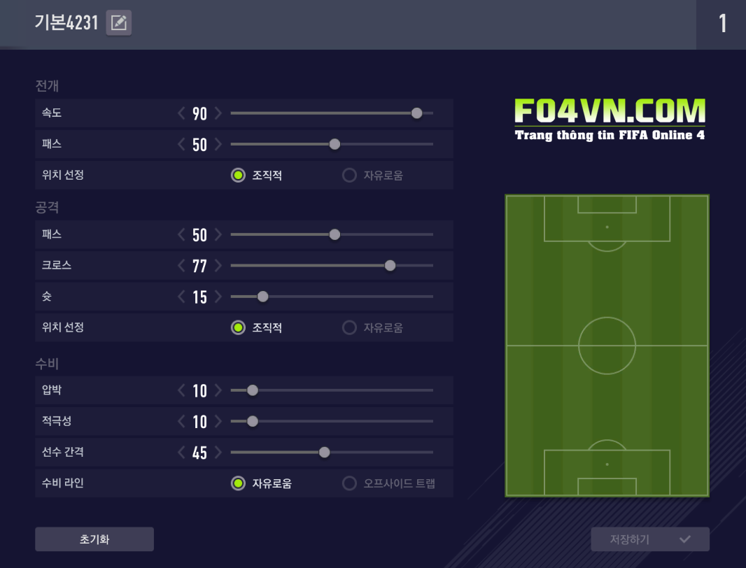 Sơ đồ chiến thuật được sắp xếp mặc định. Với 2 vị trí LM,RM được xếp linh hoạt và có thể đẩy vào như 2 LAM,RAM.