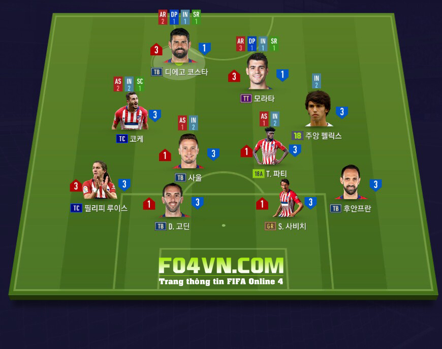 RF : AR3 là một cuộc tấn công giả, DP1 pressing hàng phòng ngự, IN1 đánh chặn chủ động, SR1 chạy chỗ hỗ trợ đồng đội. Xu hướng chơi 3-1.