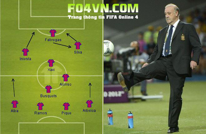 Mời bạn tham khảo qua sơ đồ 4-6-0 từng giúp TBN vô địch Euro 2012.Đội tuyển bóng đá xứ bò tót thời còn thống trị châu Âu và thế giới từng trình làng một đội hình kỳ dị với 4 hậu vệ, 6 tiền vệ và ko có tiền đạo. Đó chính là phát minh của chiến lược gia lão luyện Vincente del Bosque. Vào kỳ Euro 2012, giải đấu mà Tây Ban Nha đã lên ngôi vô địch một cách đầy thuyết phục. Đặc biệt, trong trận chung kết với Italia, HLV Del Bosque khiến tất cả sững sốt khi ko tung bất kỳ tiền đạo nào ra sân. Thay vào đó, ông sử dụng đến 6 tiền vệ nơi tuyến giữa. Kết quả, đội bóng của ông đè bẹp tuyển Ý với tỉ số 4-0, và bảo vệ thành công chức vô địch châu Âu.