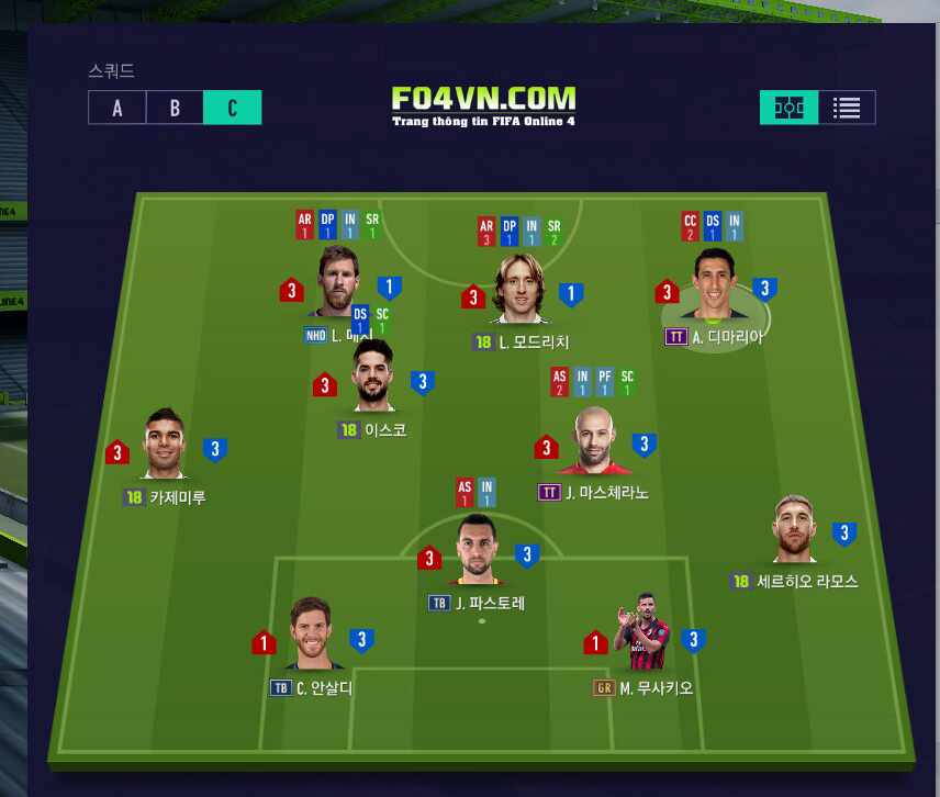 RCM : AS2 tham gia tấn công, IN1 đánh chặn chủ động. PF1 di chuyển tự do, SC1 tham gia vào các tình huống tạt bóng. Xu hướng chơi 3-3