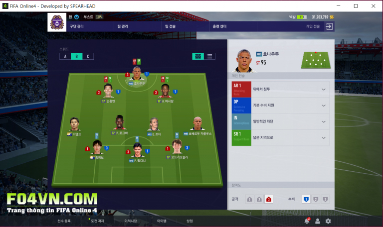 Tiền đạo sẽ được sắp xếp bao gồm RF,LF và ST. thay vì sử dụng LW và RW. Bởi lối chơi này chú trọng việc phòng ngự và phản công. Việc nhiều cầu thủ cùng sẵn sàng lao lên tấn công ở khu vực trung lộ sẽ gây nhiều áp lực cũng như tạo hiệu quả cho pha phản công của bạn thay vì các cầu thủ dạt biên. Hãy nhớ rằng, sơ đồ này sinh ra giành cho lối chơi phòng ngự phản công! Hãy chọn cho 2 vị trí RF,LF những cầu thủ có tốc độ cao, tăng tốc tốt cũng như khả năng xuyên phá hàng phòng ngự đa dạng. Lưu ý, nếu bạn cướp được bóng muốn phản công ngay, hãy đưa bóng lên cho hàng tiền vệ trước khi quyết định chọc khe bằng W,Z+W hay Q+W và bạn sẽ nhận thấy những sự di chuyển đầy khó chịu của bộ 3 tiền đạo cắm của mình.