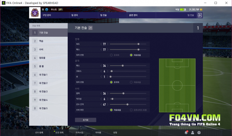 Có thể thấy việc điều chỉnh tốc độ chơi cũng như chuyền nhanh sẽ là sự hỗ trợ tuyệt vời khả nặng tấn công. 77 có lẽ là ở mức tương đối hợp lý, đủ để cho cầu thủ của bạn có thời gian chạy chỗ vì đôi khi phản công quá nhanh tiền đạo sẽ không bắt kịp dẫn đến mất bóng. Để chiến thuật chơi tự do sẽ khiến các cầu thủ thi đấu và di chuyển đa dạng hơn.
