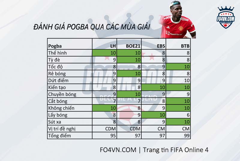 Được đánh giá là cầu thủ tài năng trong những năm vừa qua nhưng điều đáng bất ngờ là cho đến lúc này số lượng mùa giải của Pogba trong game lại tương đối hạn chế. Có lẽ bởi ngoài chức vô địch WC vào 2018, cùng những chức vô địch Serie A cùng Juventus thì đến lúc này anh chưa có được danh hiệu cá nhân nào đáng kể.