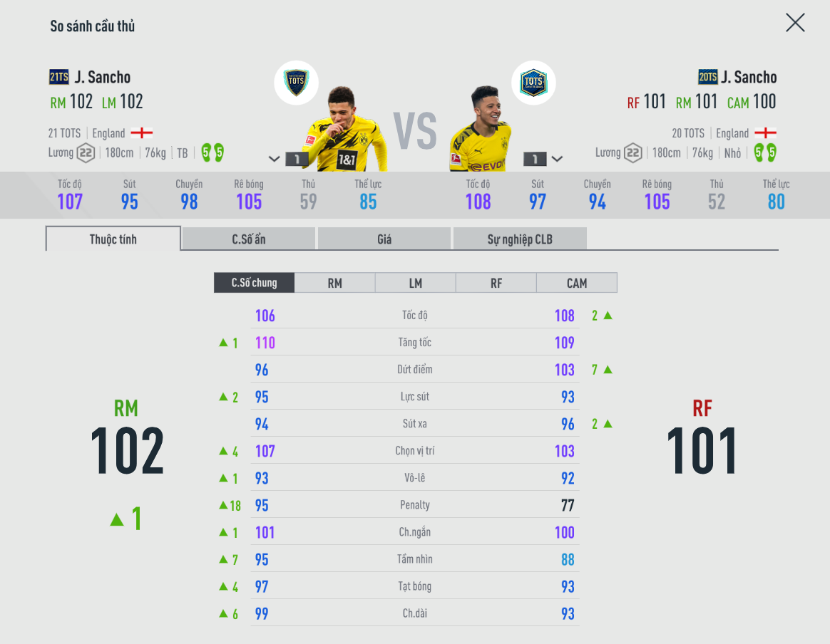 Nếu bạn phân vân giữa hai mùa giải, đừng lo lắng về mặt chỉ số ẩn của 21TS so với 20TS. Hãy tin tưởng vào mùa giải 21TS, một Sancho ổn định hơn, và nguy hiểm hơn trên hàng công dành cho bạn.