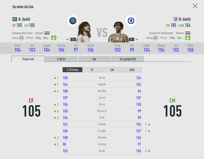 Đầu tiên cần phải nhìn nhận lại một chút về hai mùa giải này, khi EBS được xây dựng là một tiền vệ tấn công điển hình khi Gullit cùng Hà Lan vô địch năm 1988. Trong khi CFA là nửa sau sự nghiệp của huyền thoại này ở Chelsea nên ông đá chủ yếu ở vai trò một tiền vệ phòng ngự, trung tâm.