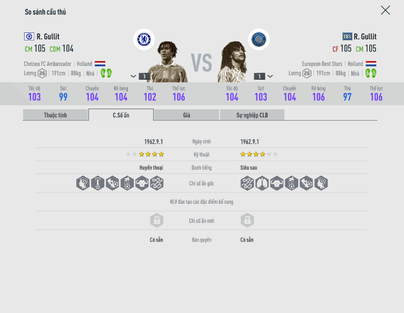 Bất chấp có chỉ số ẩn Sút xa thì nó cũng không giúp Gullit CFA bá đạo hơn EBS ở khoản đóng xa được, có chăng chỉ là trong GLXH thì Gullit tích cực ra chân nhiều hơn mà thôi.