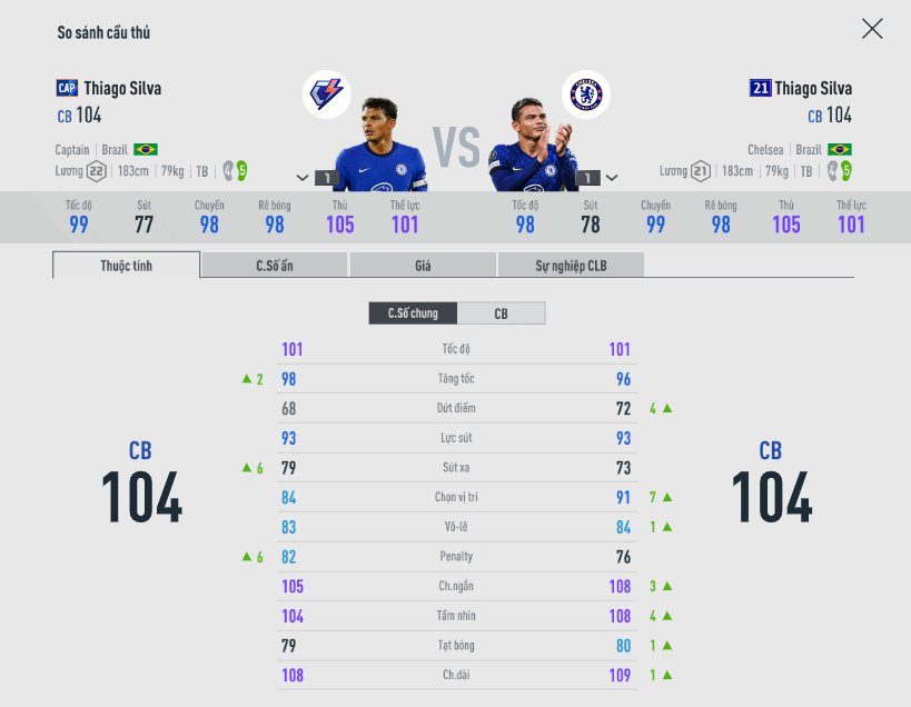 Thigo Silva là một trung vệ được các fan hâm mộ của Chelsea đặc biệt quan tâm, bởi anh thường xuyên được chọn để đá cặp với Rudiger trong game. Mặc dù Chelsea có lực lương cực mạnh nhưng đáng tiếc là các huyền thoại của họ ở vị trí này lại không có trong game để người chơi có thể lựa chọn.