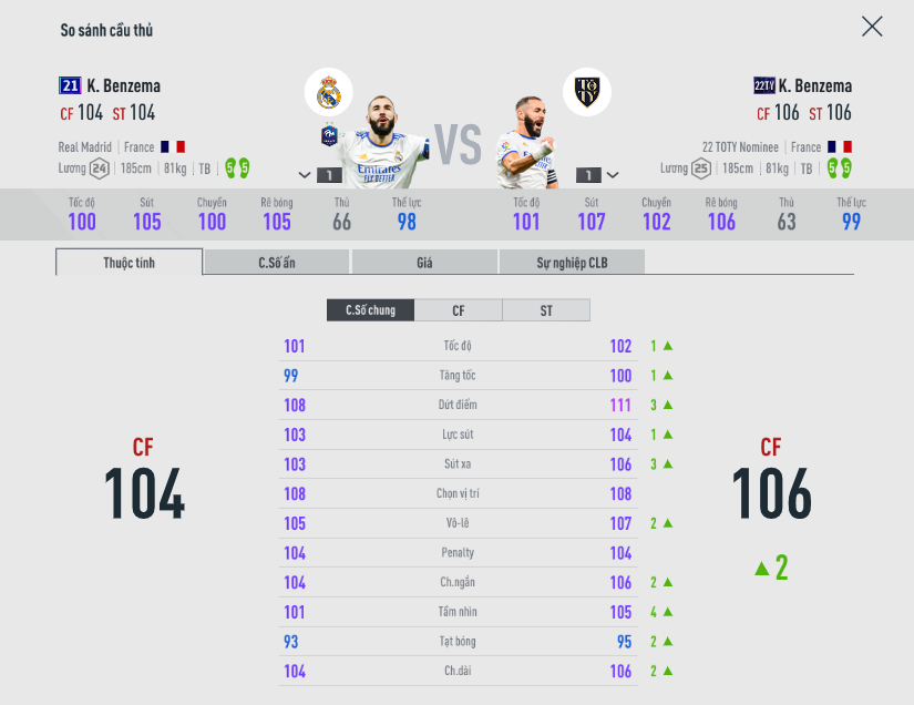 Hiện tại 21UCL hoàn toàn có thể được buff thêm chỉ số sau màn trình diễn trước Chelsea. Tuy nhiên nó sẽ chỉ có ý nghĩa về mặt hình thức chỉ số. Cái chất của Benzema 21UCL cũng là rất tốt và không hề thua kém nhiều so với 22TY. Vậy nên nếu túi tiền của bạn không quá nhiều, có thể cân nhắc 21UCL như một lựa chọn kinh tế và hiệu quả.