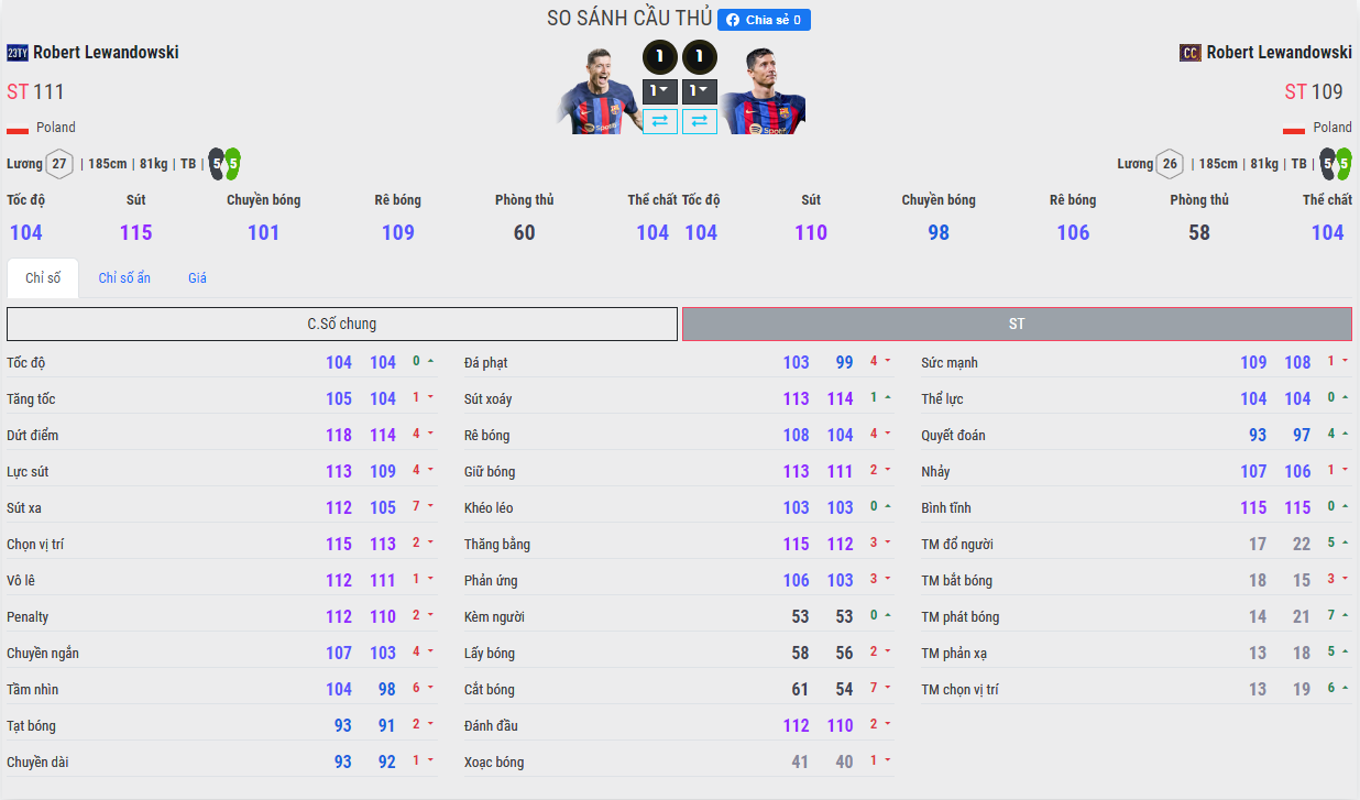 Về cơ bản thì đặc tính dứt điểm cũng như phong cách di chuyển của Lewandowski 23TOTY và CC là giống nhau