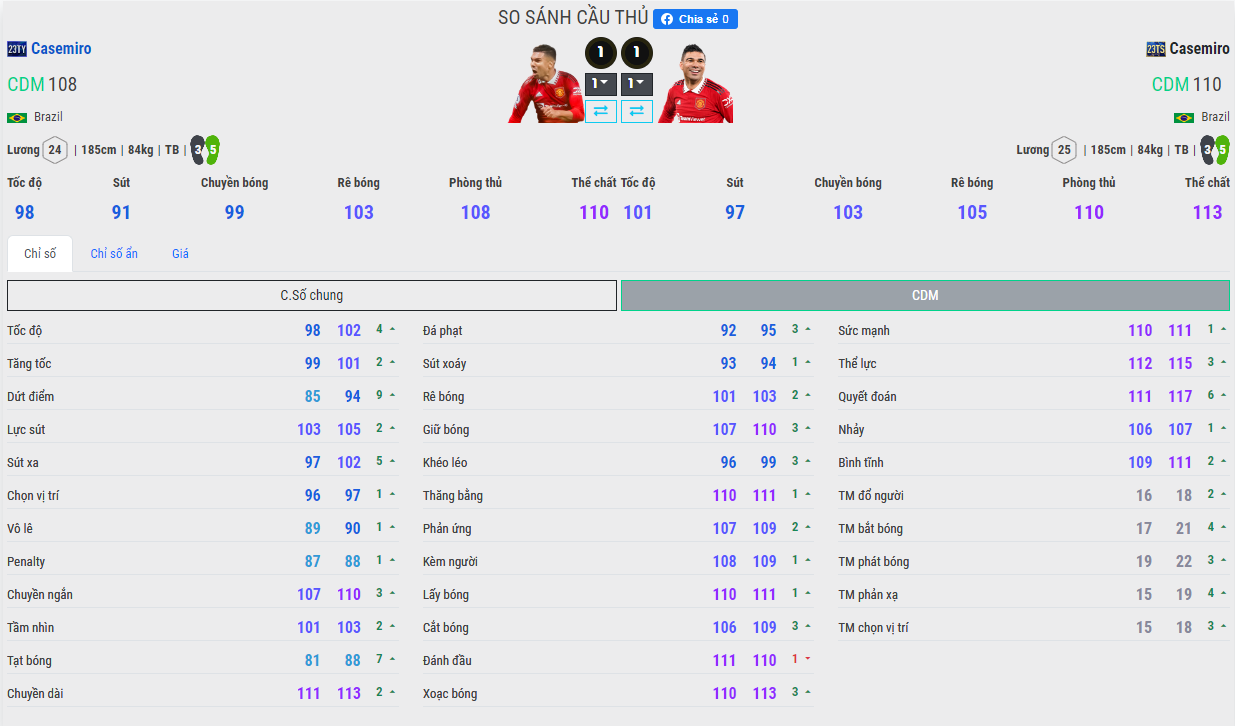 Trong FO4 thì sau khi gia nhập MU, Casemiro có 2 mùa giải rất đáng chú ý là 23TY và 23TS, dù có sự chênh lệch về chỉ số nhưng có vẻ như 23TY không hề lép vế trước 23TS