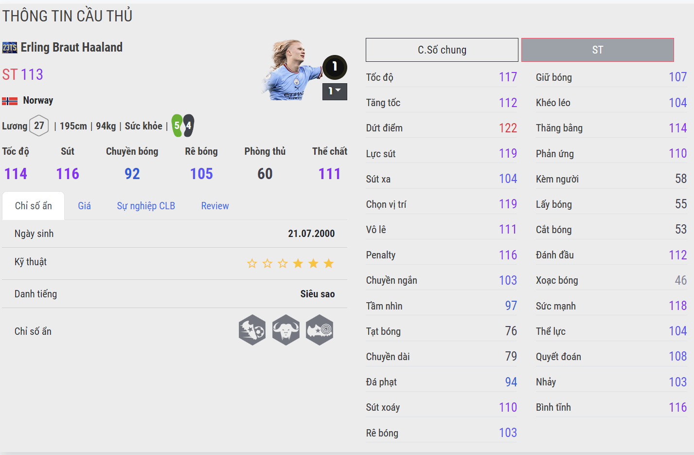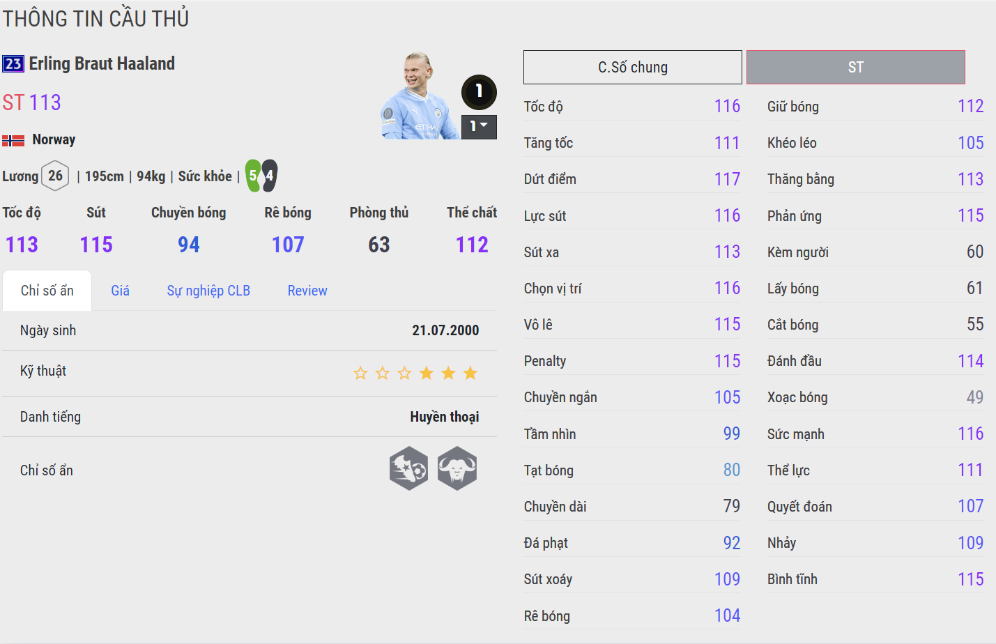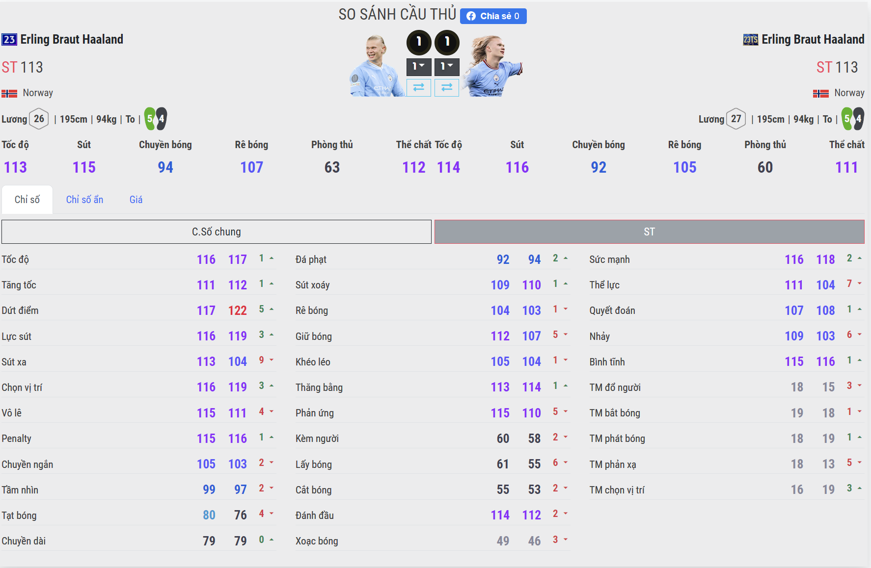 Có thể thấy 2 mùa thẻ này của Haaland có tốc độ khá tương đồng, khả năng di chuyển và đua tốc rất tốt nhưng thời gian để đạt vận tốc tối đa lại hơi lâu 1 chút. Cảm giác mùa 23TS gia tốc ingame tốt hơn 1 chút nhưng cũng không quá đáng kể.