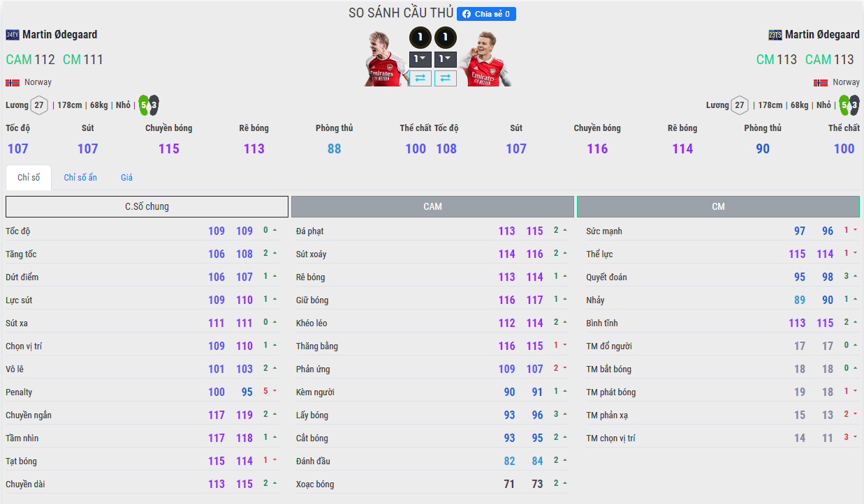 Với trường hợp của Martin Odegaard, mùa giải 24TOTY lại có chỉ số thấp hơn so với 23TS, và điều này sẽ khiến cho việc lựa chọn anh khó khăn hơn với các fan hâm mộ.