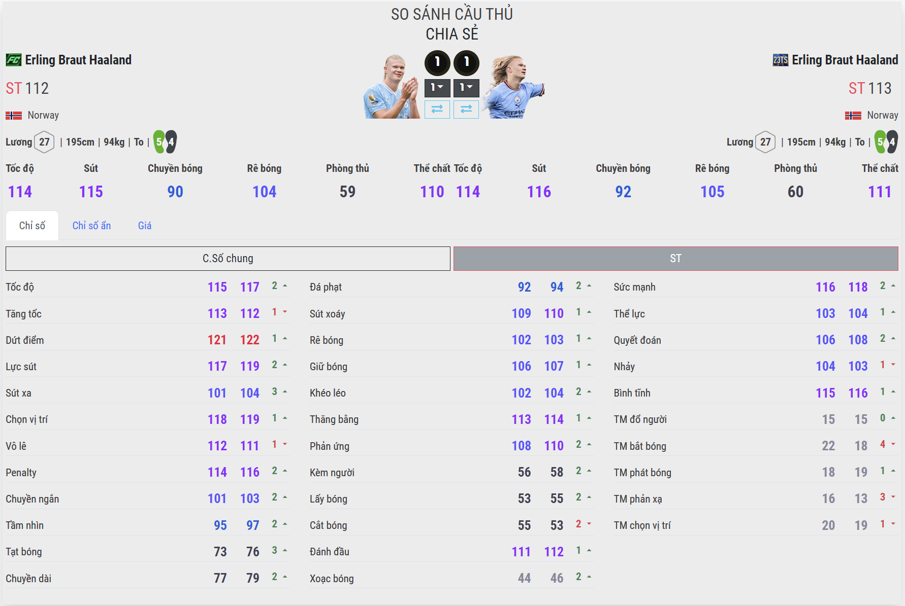 Không có quá nhiều khác biệt, tốc độ của Haaland 23TS và FC khá tương đồng, tốc độ tốt và khả năng tăng tốc không có quá nhiều khác biệt. Chỉ số ẩn ma tốc độ cũng khiến cho Haaland trở nên mạnh hơn trong các tình huống đua tốc.