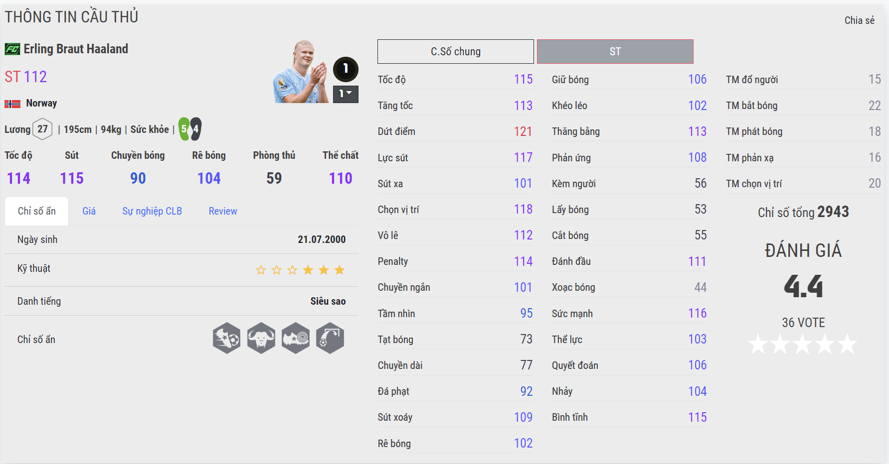 Anh là nhân tố chủ chốt giúp cho Man City vô địch mùa giải trước và tiếp tục trở nên nổi bật ở mùa giải này với thành tích ghi bàn đáng nể. Haaland là mẫu tiền đạo to con điển hình trong bóng đá hiện đại và là nơi các fan hâm mộ Man City gửi gắm niềm tin mỗi khi CLB ra sân thi đấu