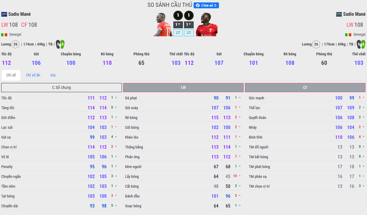 Có thể bạn sẽ nghĩ rằng 23TY ra sau thì dứt điểm tốt hơn, nhưng thực tế thì cả hai mùa về cơ bản không thay đổi gì cả. Có chăng giờ đây bạn có thể đưa Sadio Mane 23TY vào giữa đá CF một cách chuẩn chỉ hơn khi mà vị trí trên thẻ của cầu thủ này cũng đã có vị trí CF. Mane 23TY chăm di chuyển hơn.