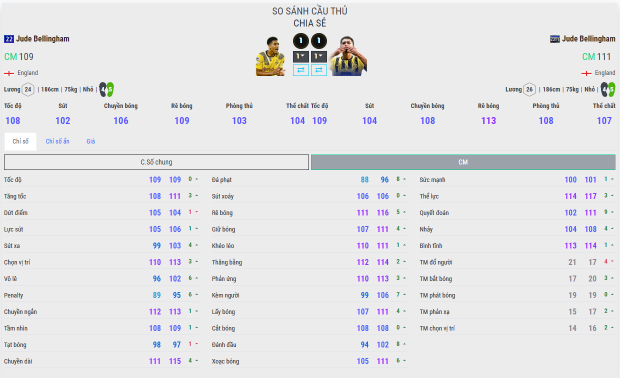 Có hai mùa giải tốt nhất của Bellingham trong Fo4 là 22UCL và 23TY. Mặc dù ít hơn 2 chỉ số nhưng bù lại mức lương của 22UCL lại dễ chịu hơn hẳn. Vậy đâu mới là lựa chọn phù hợp nhất, mời các bạn xem các đánh giá của chúng tôi.