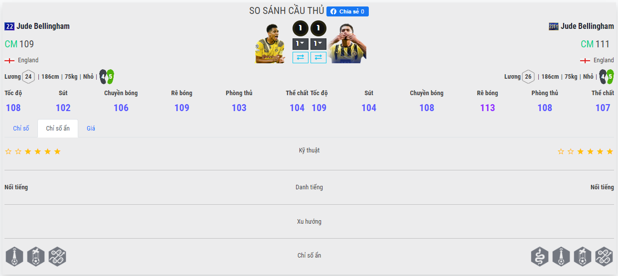 Hai mùa giải có cùng chỉ số cắt bóng, nhưng trong thi đấu bạn sẽ thấy mùa 23TY khôn hơn một chút ở khâu cắt các đường chuyền, điều này là điều dễ hiểu khi mà AI của mùa 23TY luôn được đánh giá cao hơn. Trong khi 22UCL là mùa có chất lượng rất tốt về sử dụng nhưng hiện tại Dortmund đã bị loại nên Jude Bellingham không còn cơ hội tăng chỉ số.