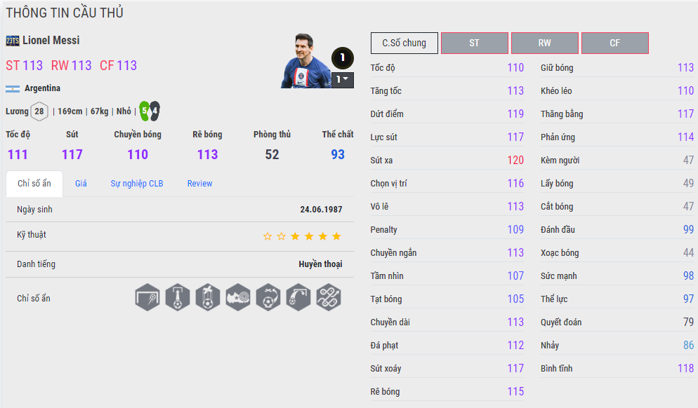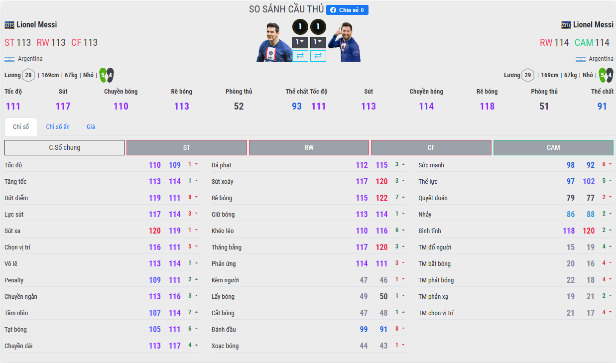 Lionel Messi 23TS rê bóng tốt hơn một chút cho dù trên thẻ chỉ số của 23TY dường như vượt trội hoàn toàn, thật ra nếu bạn là một người dùng skill tốt thì chắc chắn bạn sẽ thích 23TY hơn do nhiều kỹ thuật yêu cầu chỉ số rê bóng thì chỉ mùa 23TY mới làm được, còn 23TS muốn làm bạn cần nâng cấp mức thẻ + 5 lên.