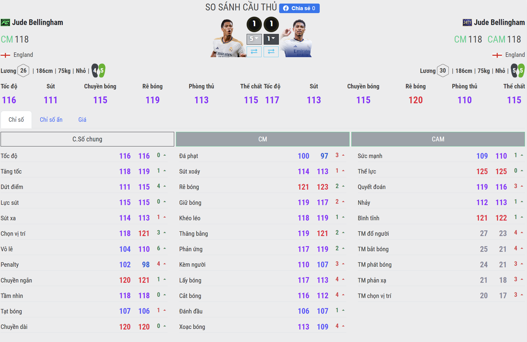 So sánh hai mùa giải 24TOTY và DC của Karim Benzema trong FC Online