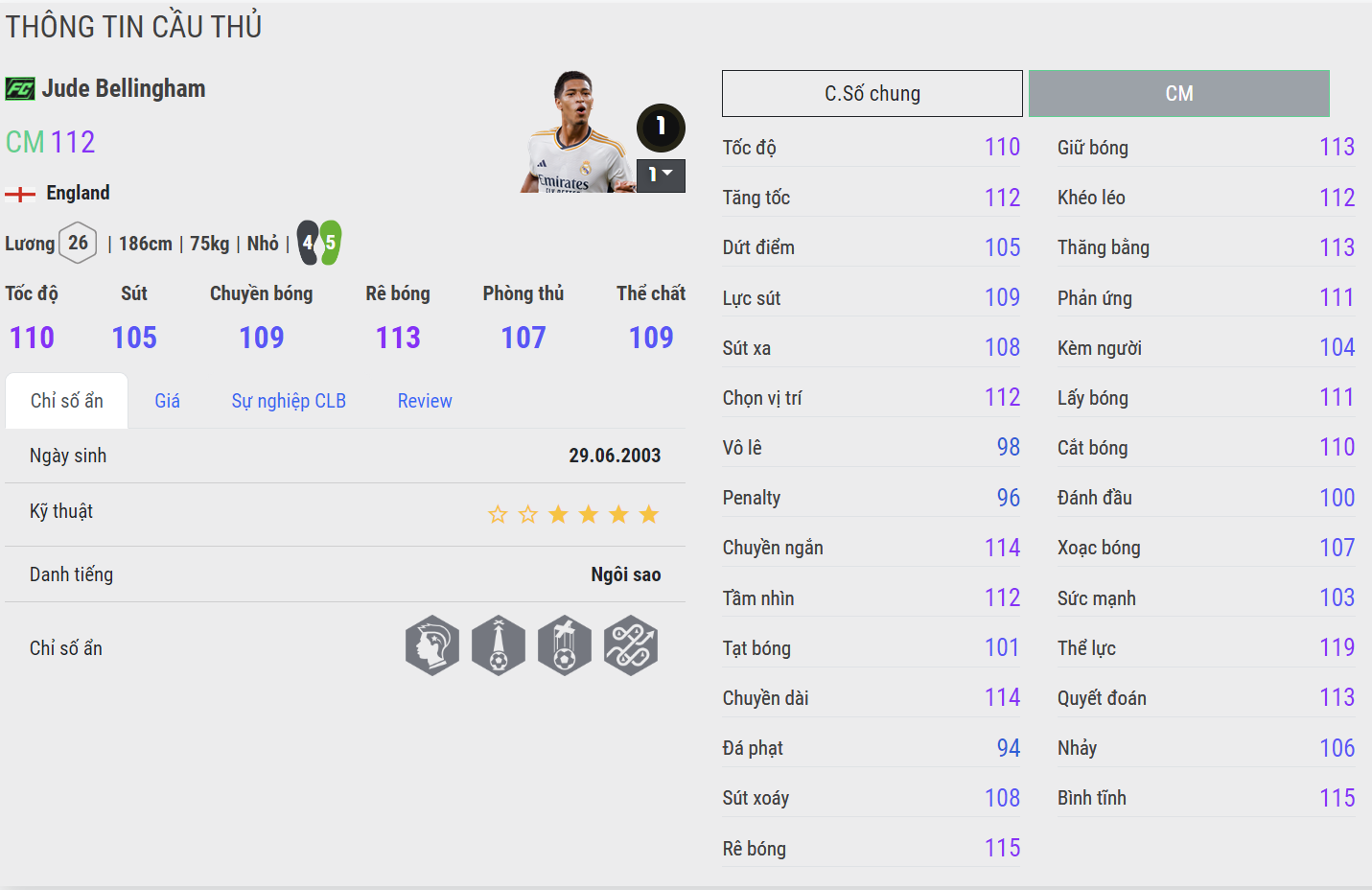 Trong game, Bellingham tiếp tục là cái tên được đánh giá cao bởi sự đa năng và toàn diện ở hầu hết các vị trí trên hàng công và sự nâng cấp đáng kể ở mùa thẻ 24TOTY khiến Bellingham càng được săn đón hơn nữa.